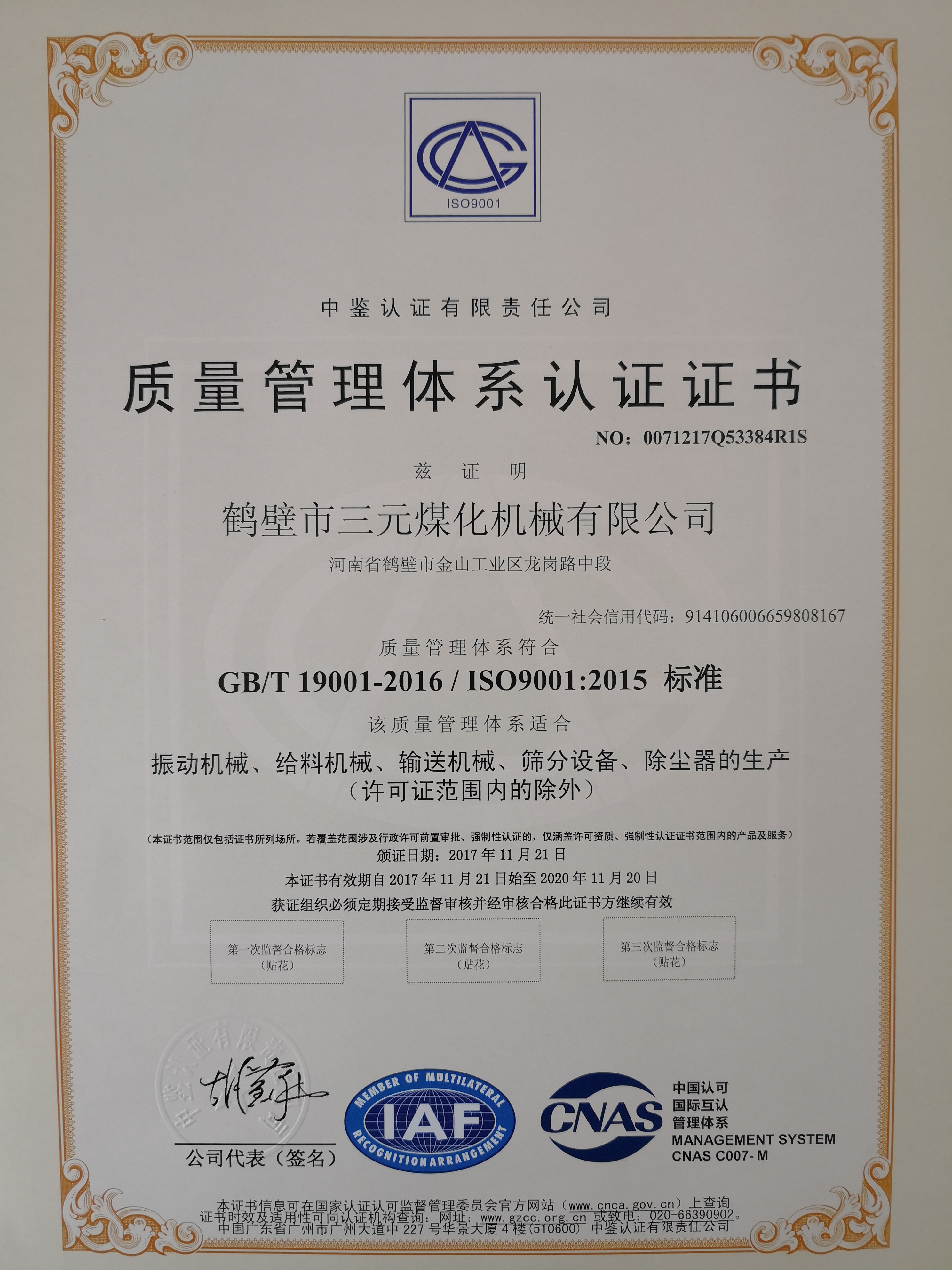 質(zhì)量管理體系認(rèn)證證書(shū)